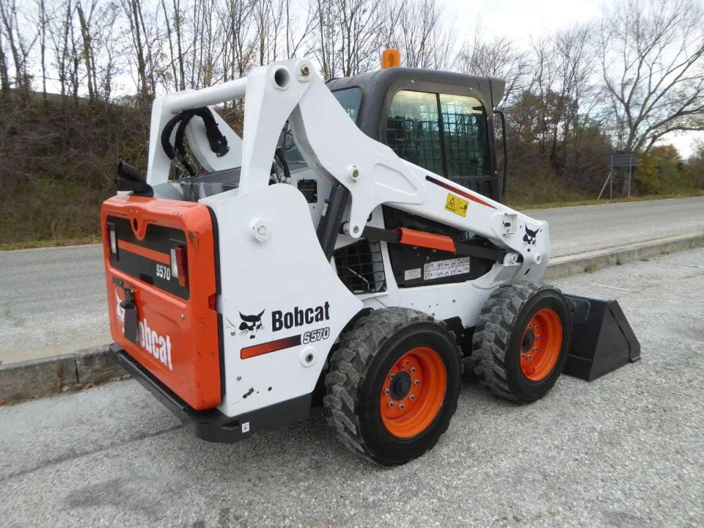Mini chargeuse Bobcat S570 de 2016, destinée exclusivement à un usage professionnel sur chantier, site privé ou zone fermée. Cette machine est conçue pour les travaux de construction, terrassement, manutention et aménagement, et n’est pas destinée au transport de personnes.
